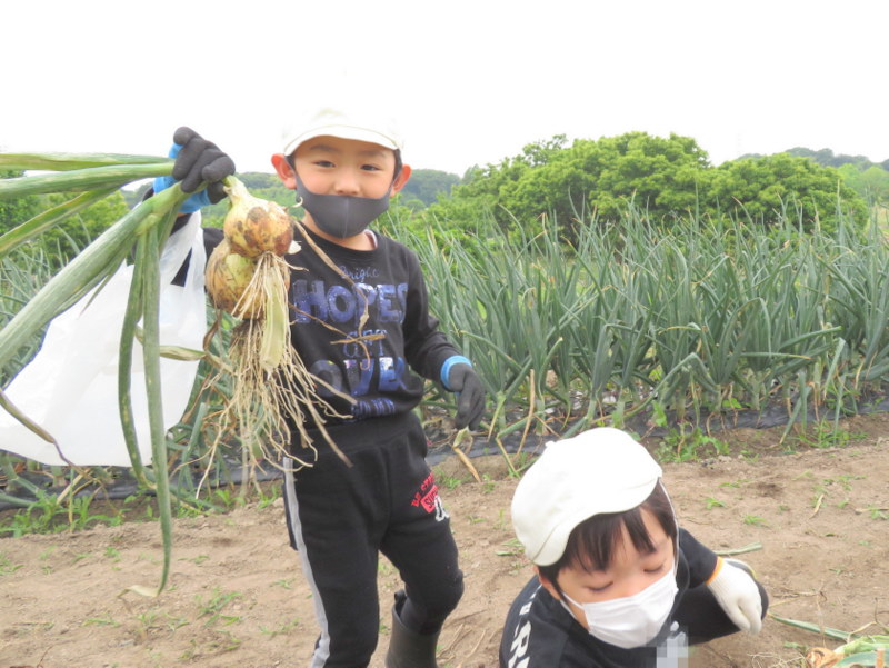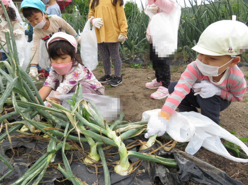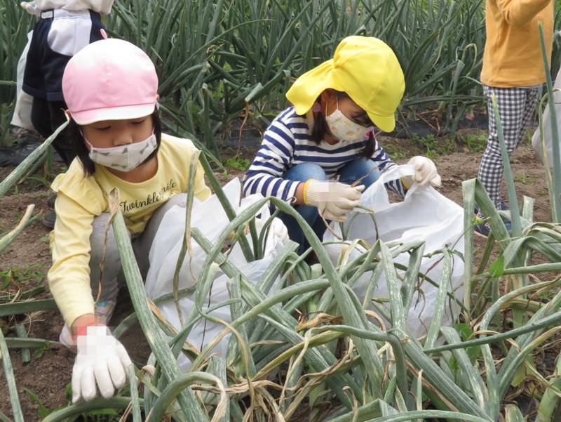 あか組さんは、初めての収穫体験。うんとこしょ・どっこいしょ1人でぬけるかな~。