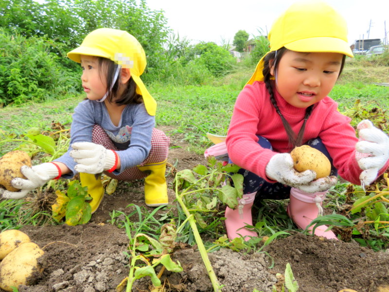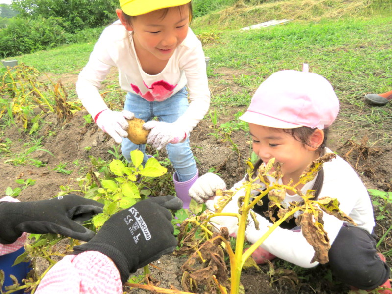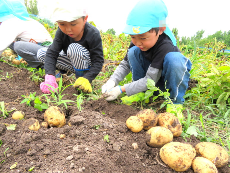 土の中には、たくさんのじゃがいもがあり「どんどん出てくる~♪」とにっこり笑顔。