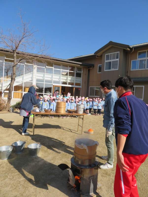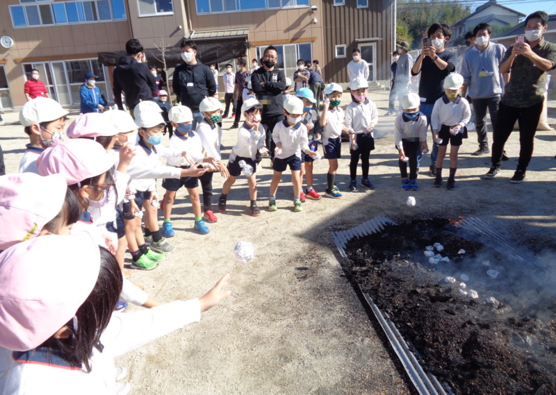 パパレンジャーのお父さん達が、火をおこしてくれました。